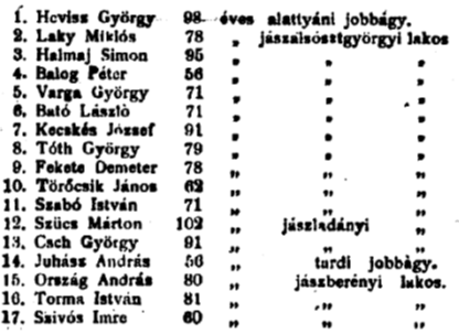 „Megjegyzem, hogy Orczy István jász-kunkapitány sohasem volt, ő csak a jászkun ügyek ellátására kiküldött országos vagy királyi kommiszió administrátora volt.”